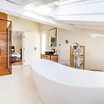 Tot de badkamerfaciliteiten behoren ook een bubbelbad, een douche en een wasmachine. Een droger zijn inbegrepen voor extra comfort.